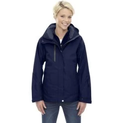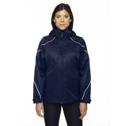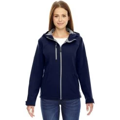 North End Women’s Classic Navy Prospect Two-Layer Fleece Bonded Soft Shell Hooded Jacket