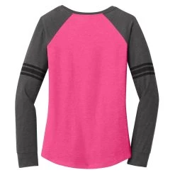 District Women’s Heathered Dark Fuchsia/Heathered Charcoal/Black Game Long Sleeve V-Neck Tee