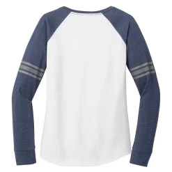 District Women’s White/Heathered Navy/Silver Game Long Sleeve V-Neck Tee