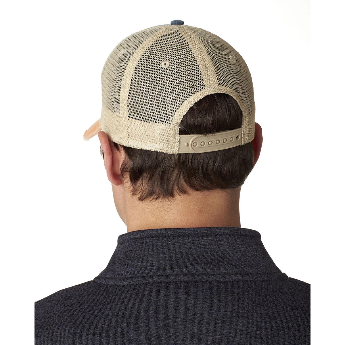 Let’s be honest: it doesn’t really look like a true trucker cap unless it’s a little distressed. Sun-beaten. Wind-worn. This Adams Men’s Navy/ Tangerine 6-Panel Pigment-Dyed Distressed Trucker Cap has that authentic look that’s perfect to represent the hard-nosed logo you’ve created. And with 100% cotton on the front panel and visor, you’ll find plenty of comfort in representing that hard-nosed brand no matter where you go; and if you use this cap as a way to promote your event or simply to give away as prizes, people will enjoy doing exact same thing. Features a distressed/torn visor for a “rough” but stylish look.