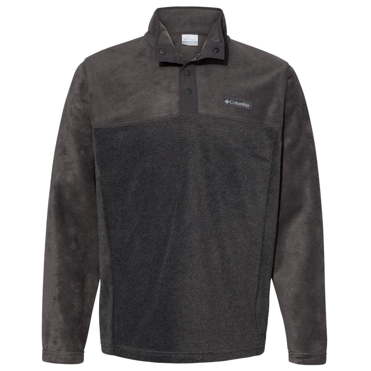 Look and feel great in a custom logo Columbia Men’s Charcoal Heather/Shark Steens Mountain Half-Snap Pullover. Made of 100% polyester MTR filament fleece, this half-snap is warm and cozy on those chilly spring, fall, and winter days. Carrying a medium weight for ease of wear and warmth, the nylon placket has a four snap closure that can be worn open or closed for an easy fit. Perfect for layering, this pullover can be embroidered with your corporate logo to sale at events or trade shows. Use as daily wear, employee gifts or even employee apparel options for those who work outdoors. Place an order today to have these ready for whatever your needs may be.