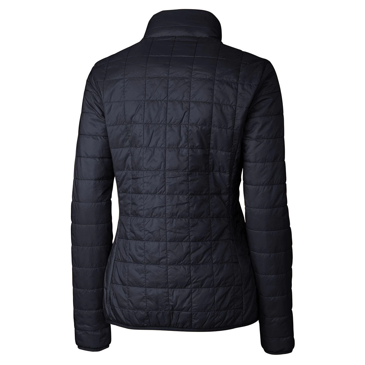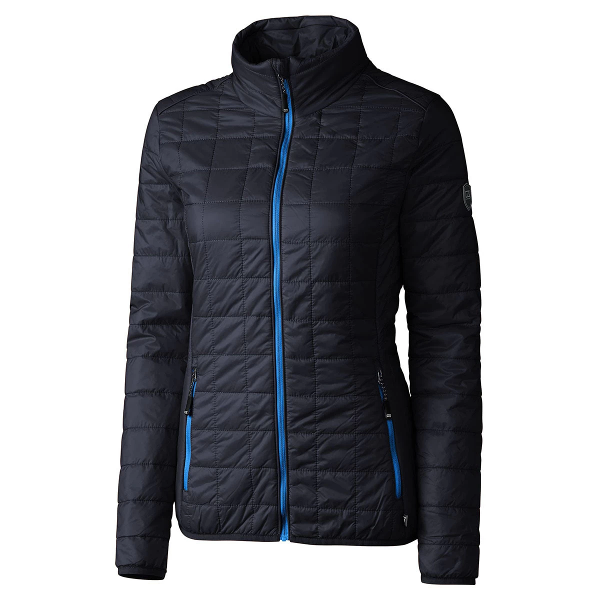 For a ladies’ long sleeve jacket that is rated from zero to 50, the Cutter & Buck Women’s Dark Navy Rainier Jacket is a great option, especially because your company’s logo can be embroidered on it. It is insulted and made from easy-care taffeta. It has a mock turtle neck, full zipper front and front pockets with zippers. It is fully lined with a concealed hood and elastic bound cuffs. For your embroidered logo there is zip in lining for embroidery access. There is Primaloft fill that is packable into the left front pocket. This vest is machine washable in cold water on the delicate cycle.