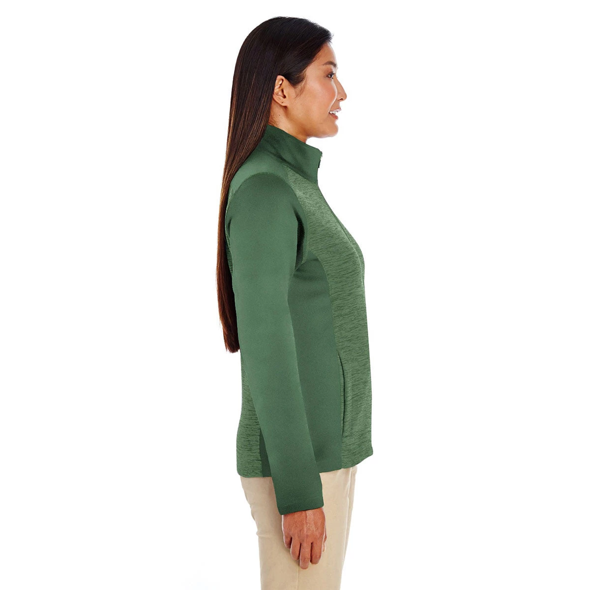 Devon & Jones Women’s Forest/Forest Heather Newbury Colorblock Melange Fleece Full-zip