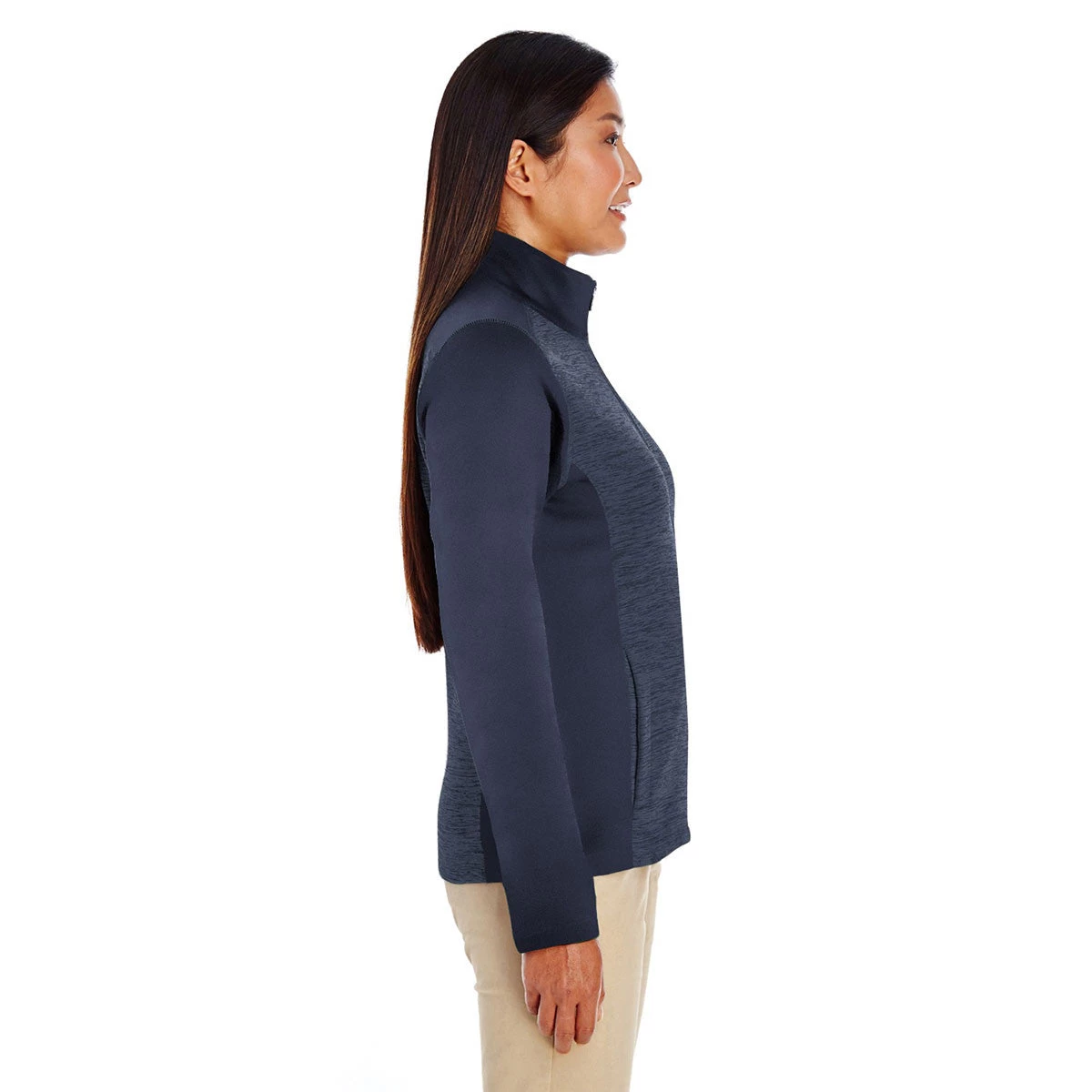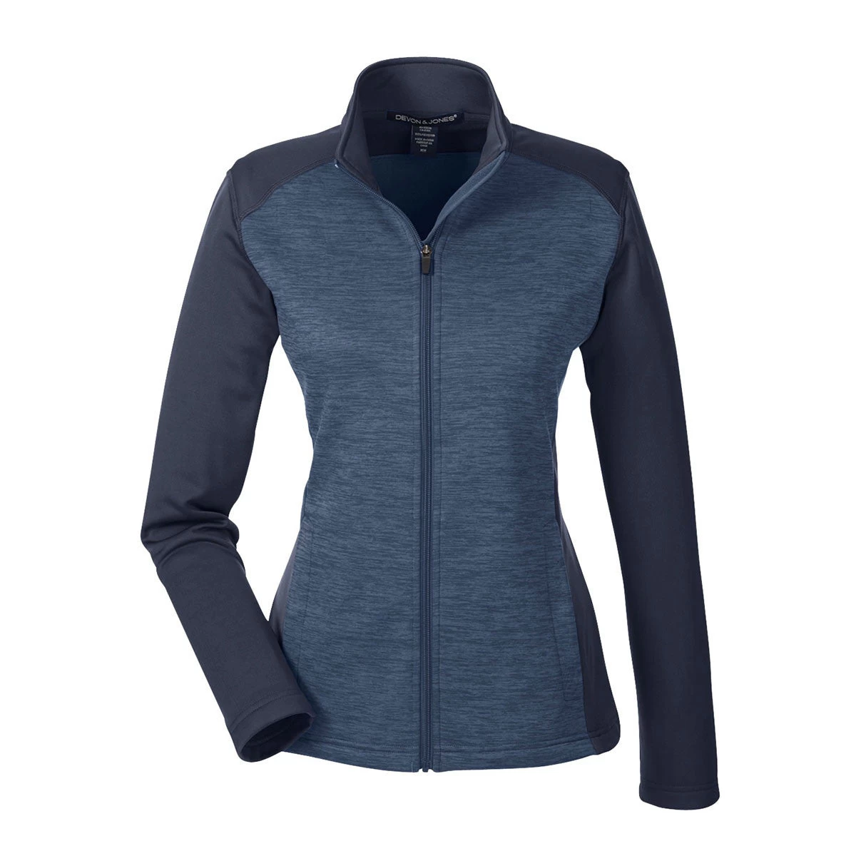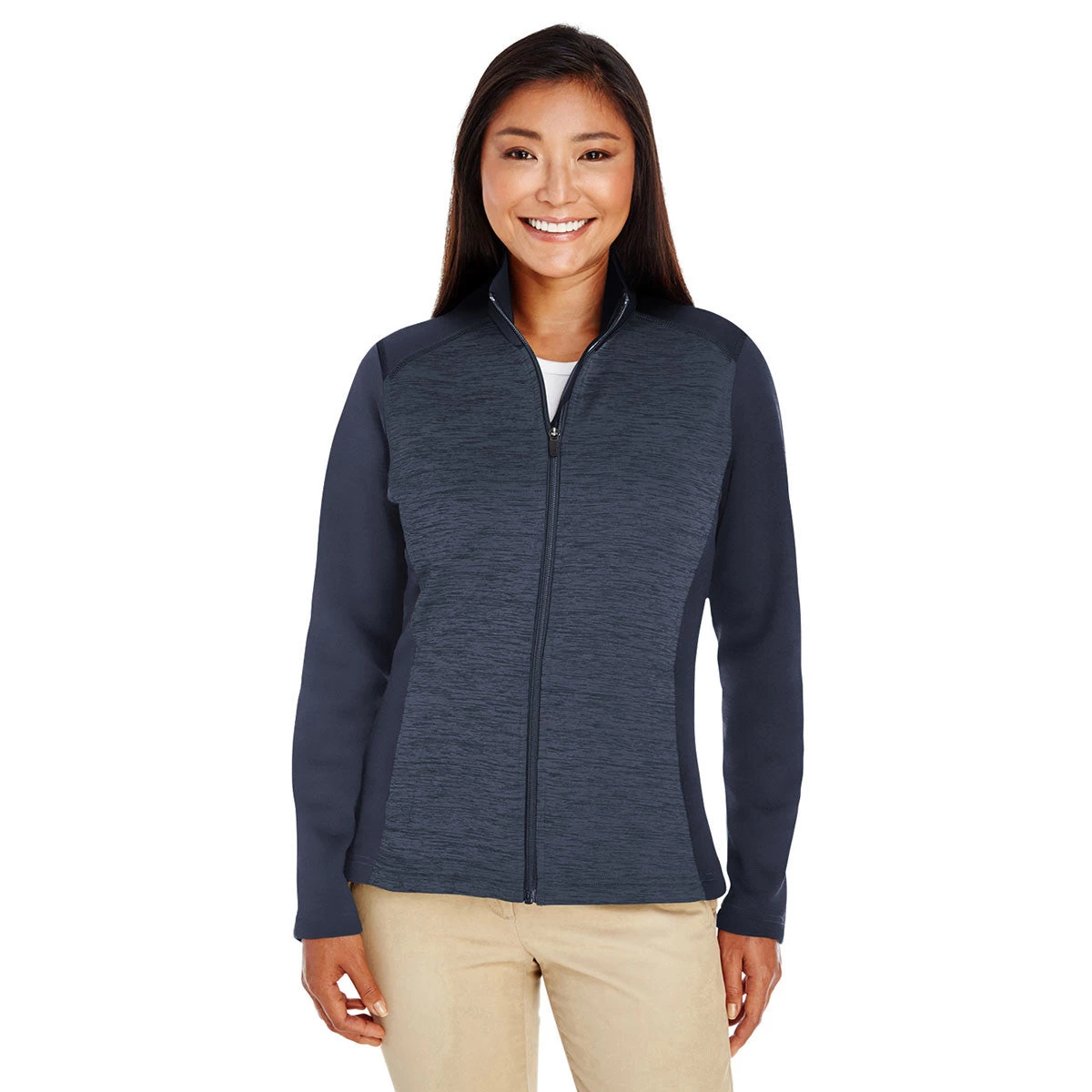 Corresponding Men’s Style:Devon & Jones Men’s Navy/Navy Heather Newbury Colorblock Melange Fleece Full-zip