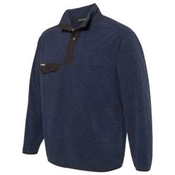 Choose your embroidery for the Dri Duck Men’s Navy Denali Mountain Fleece Pullover to use as corporate apparel or part of uniforms for workers. The 100% polyester melange Heather Mountain Fleece is soft, versatile, and durable. The anti-pill exterior and interior ensures longevity of wear and an anti-static finish keeps you looking sharp as you work, commute, and meet with friends. A chest pocket with snap closure keeps small items close at hand and UPF 50+ sun protection protects you even further. Place an order today to make sure these are part of your apparel line as soon as possible.