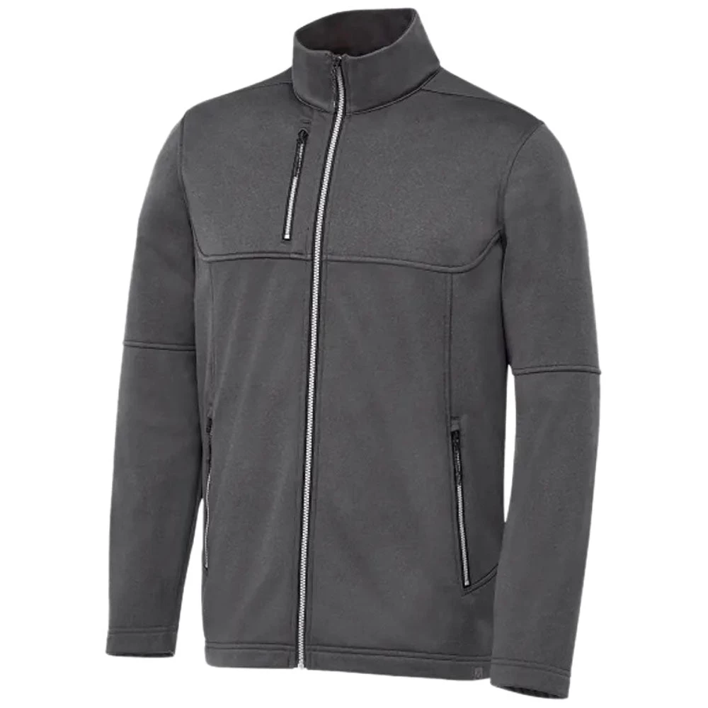 Elevate Men’s Heather Dark Charcoal Joris Eco Softshell Jacket with custom embroidery looks out for the wearer and the planet as it is created from recycled polyester and has a no contact keychain to keep you from touching buttons and keypads. The breathable, lightweight jacket is great for any weather and keeps valuables safe in zippered pockets. Place an order today.
