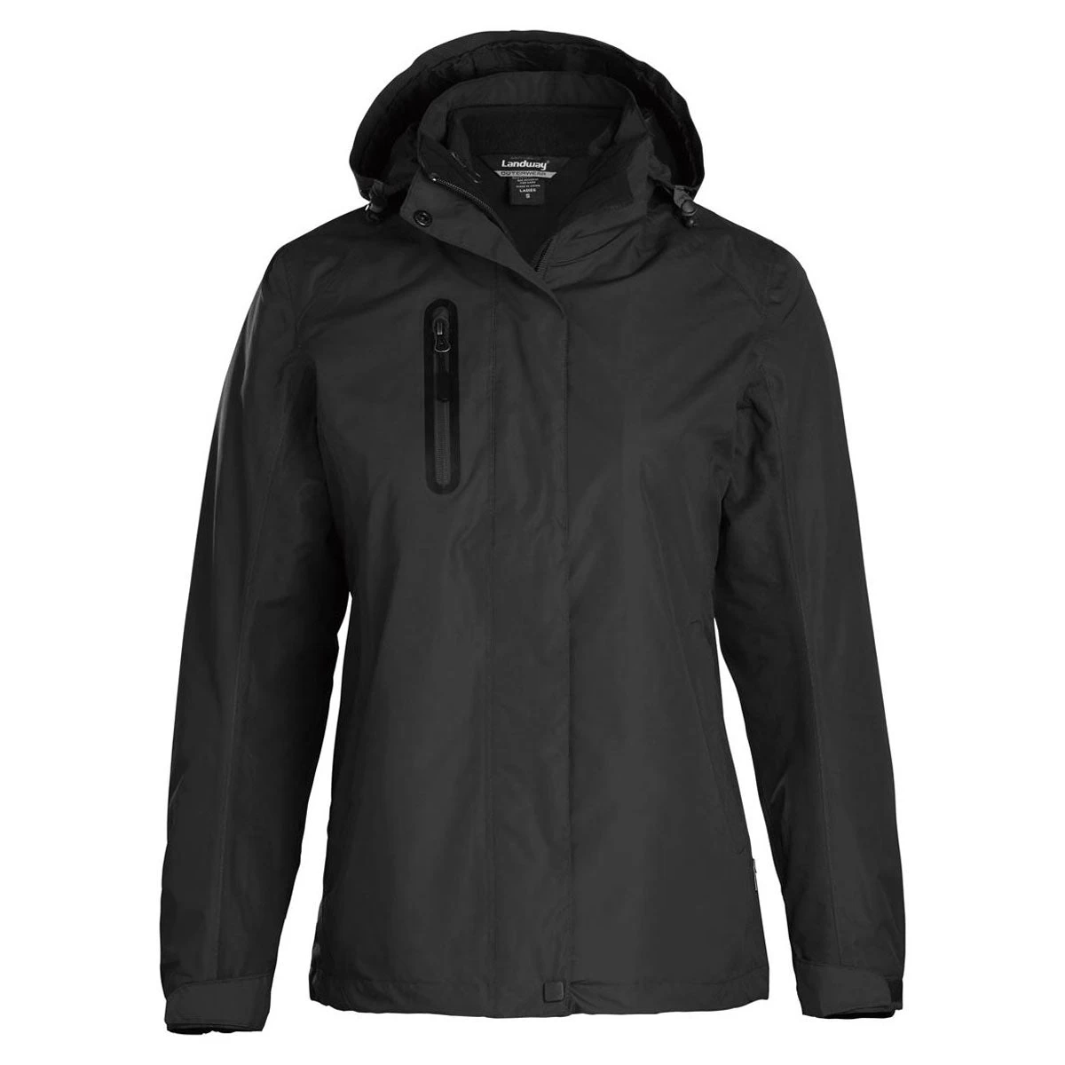 Discover your fashionable path by ordering the embroidered Landway Women’s Black Pathfinder 3-in-1 Parka. Designed with a full front storm flap and closure, the ultimate winter coat repels water to ensure you remain comfortably dry throughout a cold weather weekend camping trip. Polyester microfleece lining acts as an extra layer of insulation that traps body heat. Attach and zip up the three-panel hood to protect your head and neck from icy winter blasts. Adjustable cuffs prevent cold air from moving up the arms. Add a custom logo to turn the warm parka into a powerful marketing platform.