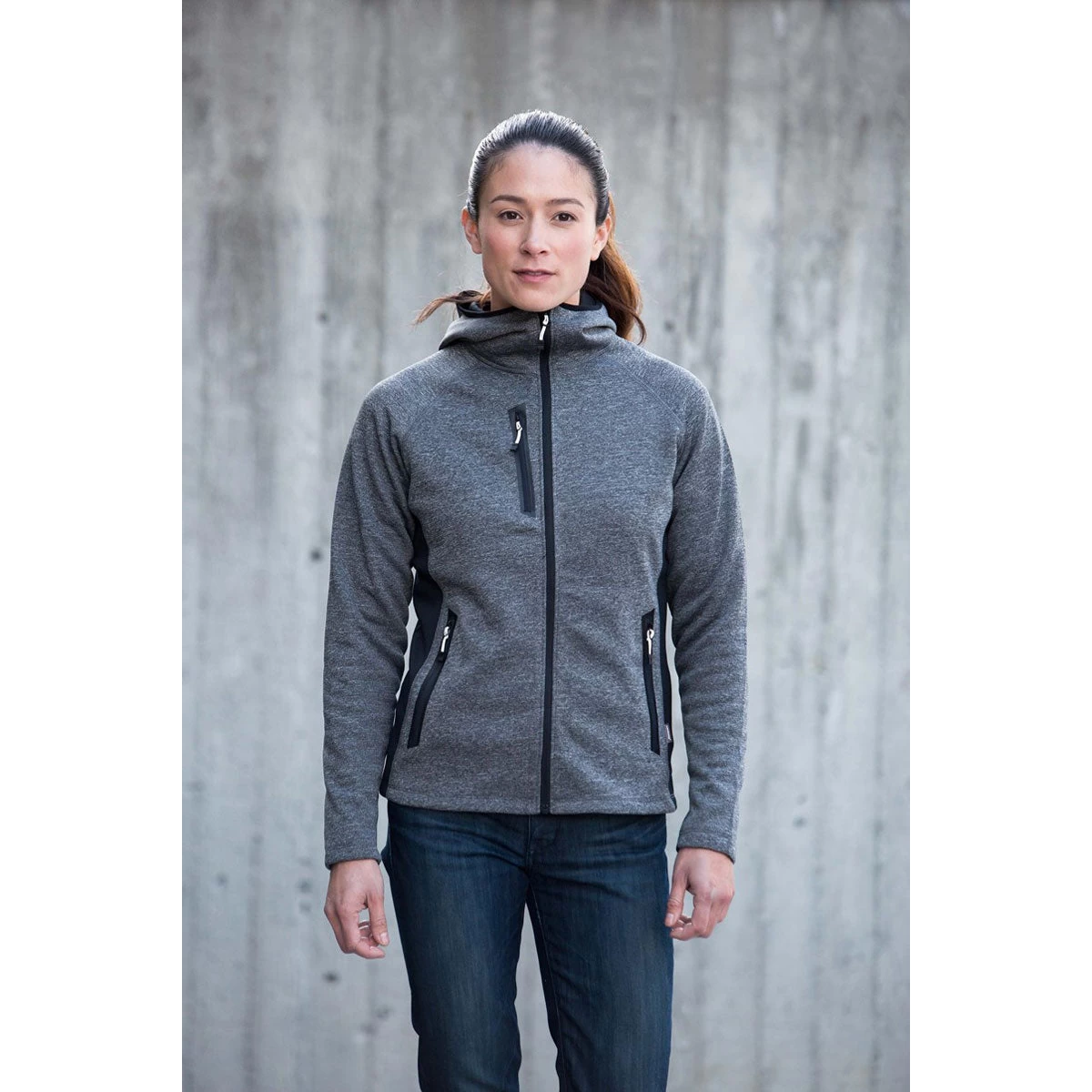 Change the way your professional peers view outdoor corporate apparel by ordering the company logoed Landway Women’s Dark Ash/Black Hooded Phantom Soft-Shell. The 100% polyester shell remains intact after several years of grueling use during outdoor recreational activities. Moisture wicking technology rapidly eliminates moisture to ensure you remain comfortable when the skies release steady rain. The diamond-shaped fabric increases air circulation to cool the body. Wear the wind guard fitted hood to protect the most vulnerable part of your body. Attach a custom logo to generate buzz for your company on business trips. Your employees will appreciate having an embroidered jacket that is not only comfortable but also looks great.