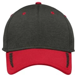 - Stretchable cap that pairs a heather crown and colorblock bill