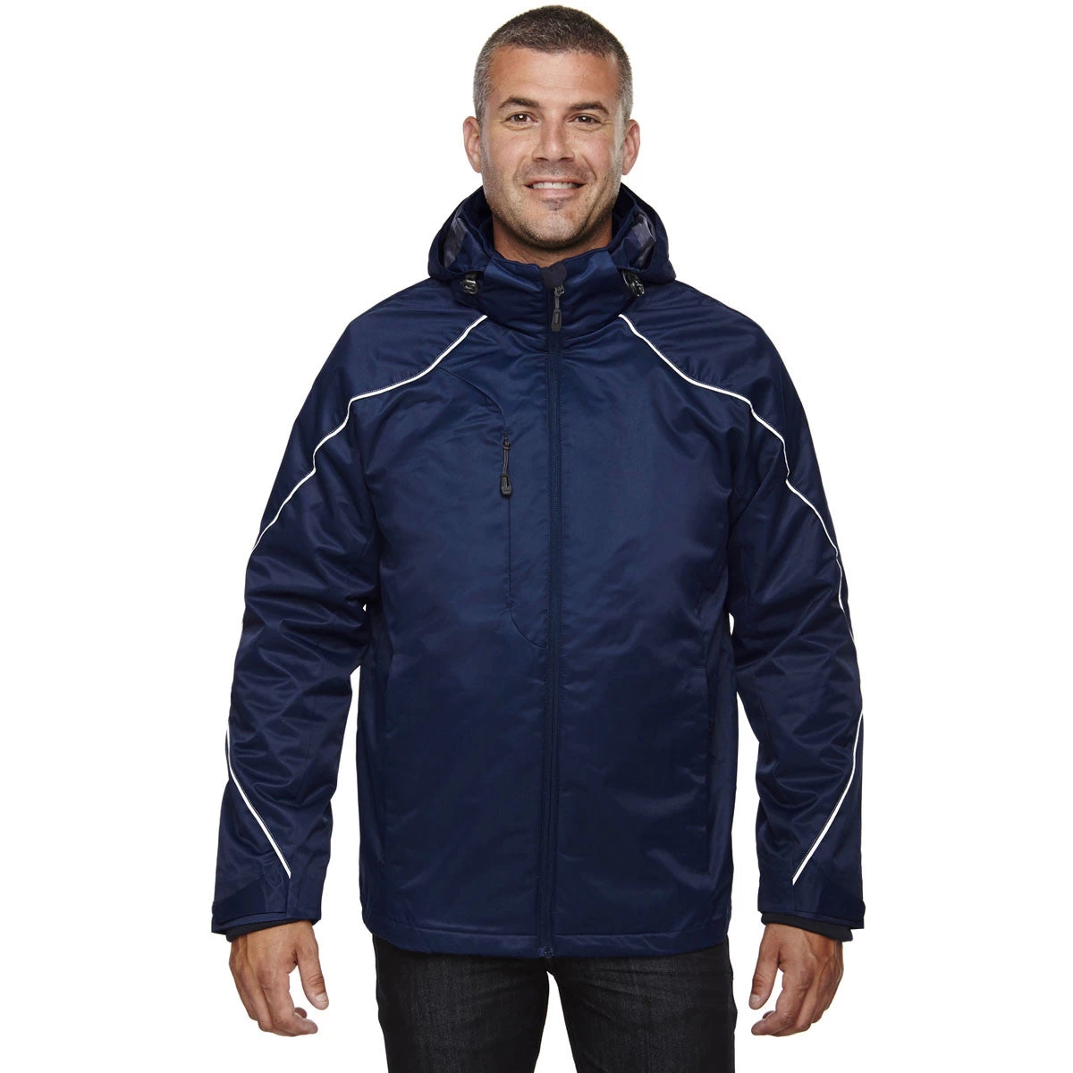You never sweat the small stuff, whenever you wear the North End Men’s Night Angle 3-In-1 Jacket with Bonded Fleece Liner. The 100% polyester mesh in the upper body and hood provides maximum breathability on sweltering hot summer days. Enjoy wearing the completely seam-sealed waterproof shell during inclement weather any time during the year. Brushed tricot lined pockets store everything from car keys to your most important business documents. Add a custom logo to the North End Men’s Night Angle 3-In-1 Jacket With Bonded Fleece Liner to promote your company at civic events. Give your employees and loyal customers this affordable outerwear to show your appreciation. The detachable hood conveniently stores in one of the lower reverse coil zippered pockets.