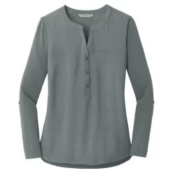 When it comes to casual professional apparel, nothing beats the stunning design of the logoed Port Authority Women’s Grey Smoke Concept Henley Tunic. The soft, flowing fabric presents a professional appearance because of the tightly woven front and back knit fabric. Polyester and rayon combine to resist the types of rips and tears that end the fashion usefulness of other styles of women’s corporate apparel. Port Authority custom designs the women’s Henley tunic tobe ready for anything your day has in store. Roll sleeves with stylish button tabs allow you to roll your sleeves up and get down to business. Add your company logo and watch awareness of your brand reach new heights.