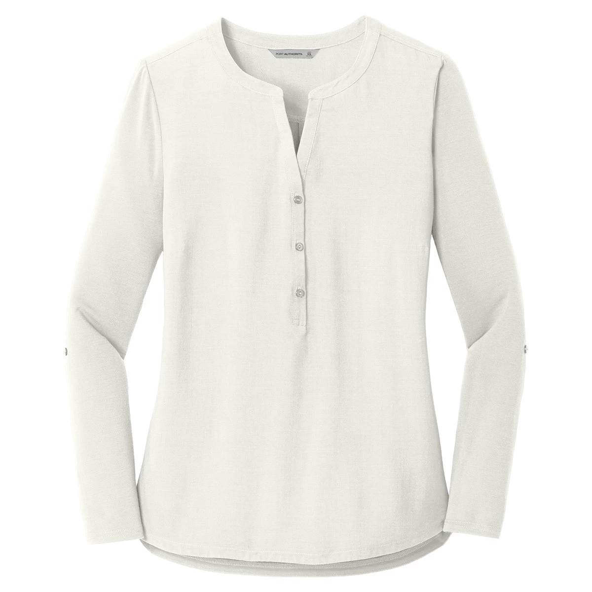 When it comes to casual professional apparel, nothing beats the stunning design of the logoed Port Authority Women’s Ivory Chiffon Concept Henley Tunic. The soft, flowing fabric presents a professional appearance because of the tightly woven front and back knit fabric. Polyester and rayon combine to resist the types of rips and tears that end the fashion usefulness of other styles of women’s corporate apparel. Port Authority custom designs the women’s Henley tunic tobe ready for anything your day has in store. Roll sleeves with stylish button tabs allow you to roll your sleeves up and get down to business. Add your company logo and watch awareness of your brand reach new heights.