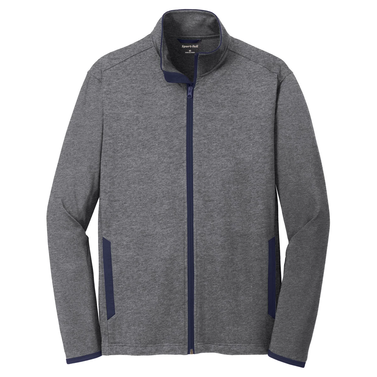 Corresponding Women’s Style:Sport-Tek Women’s Charcoal Grey Heather/True Navy Sport-Wick Stretch Contrast Full-Zip Jacket