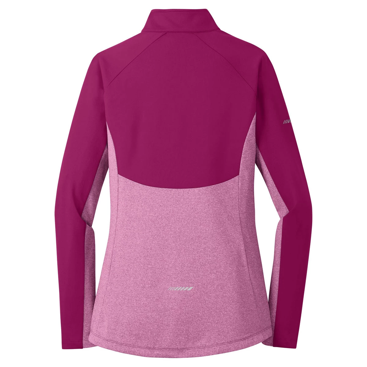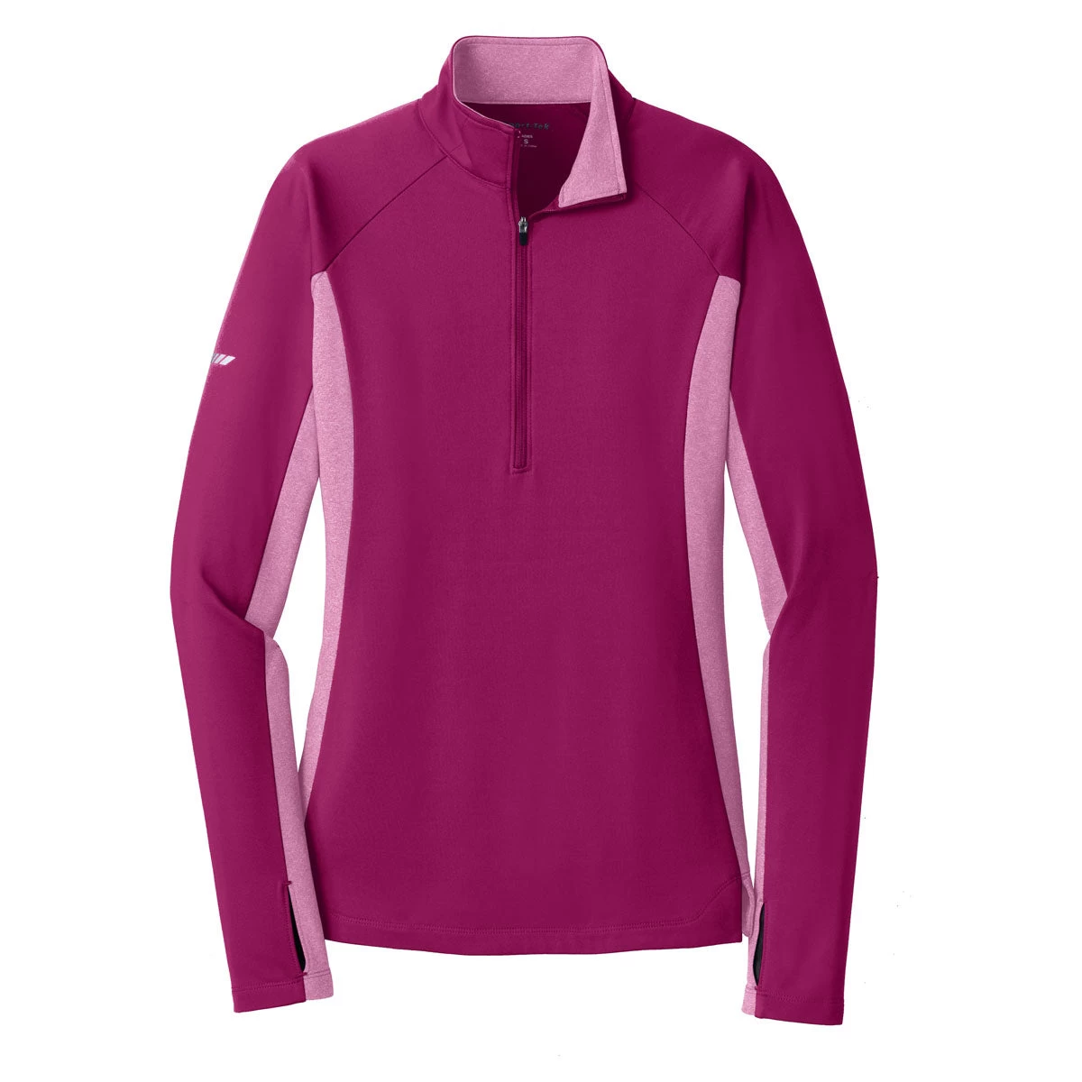 The logoed Sport-Tek Women’s Pink Rush Heather Sport-Wick Stretch Contrast 1/2-Zip Pullover features a gently contoured silhouette that makes the layering piece both comfortable and stylish. With all eyes upon you, display the corporate logo you attached on the large imprint area to attract more interest in your products and services. Moisture wicking technology keeps you comfortable all day long, and ready for anything. Reflective details on the right sleeve and lower back are a necessary addition for late night workouts. This layering piece is one that both creates unity for your team, and outfits them with a 1/4 zip they will want to wear more than just at the office.