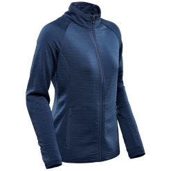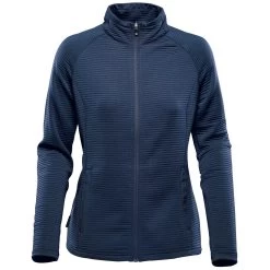 Add a custom logo to the Stormtech Women’s Navy Andorra Jacket for an updated classic look in a full front zip design. The simple, two-layer fleece lined jacket offers a flattering fit that can easily go from work to hanging out with friend and chilling around a campfire. Add a custom logo to use as warm-up gear when working out or give as custom gifts to those you care about in life. A company logo will create a nice addition to uniforms to present sleek, clean appearances for employees. Simple, kanga pockets keep small items secure.
