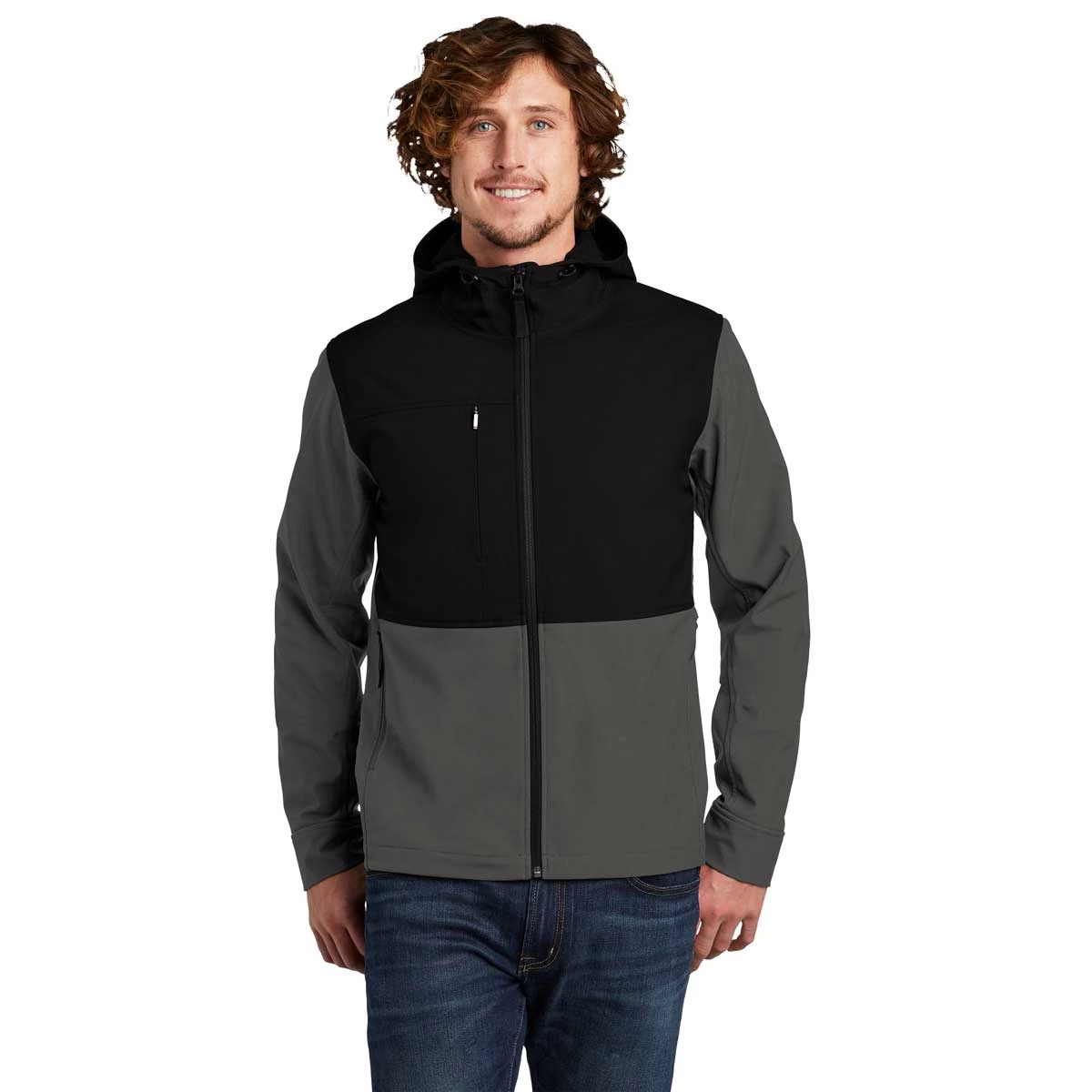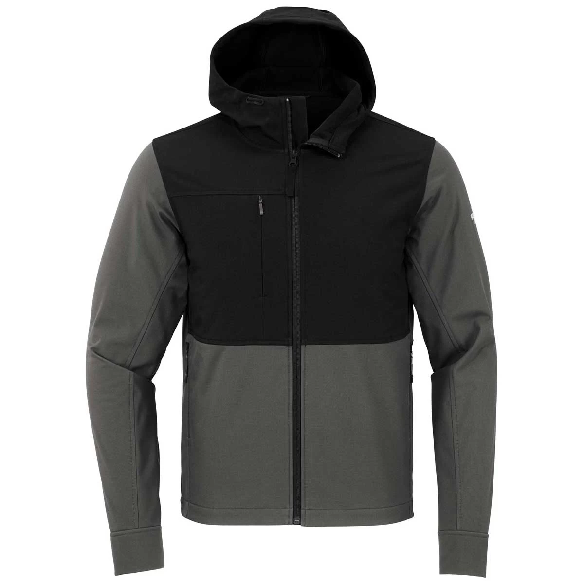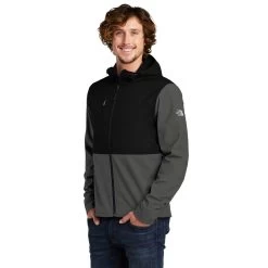 Take on the world in a custom The North Face Men’s Asphalt Grey Castle Rock Hooded Soft Shell Jacket. This jacket is ready for outdoor adventure with great durability and versatility. The North Face always delivers when it comes to quality, but this color blocked design goes above and beyond with a water repellant finish and wind resistance. Add a custom logo to the jacket that can serve as personal or employee apparel with an attached, adjustable hood and hem cinch cord for customized fit. Add a company logo to use as employee gifts that can be worn at work or while enjoying the weekend being active.