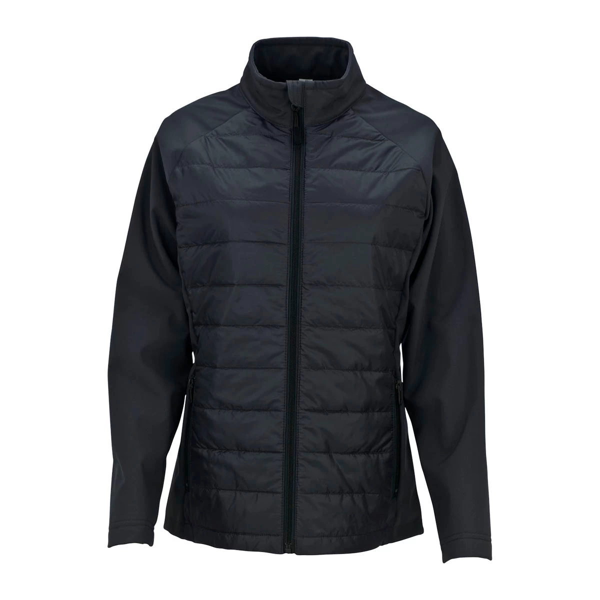 Order the embroidered cross over Vantage Women’s Black Onyx Hybrid Jacket to match your fashion needs for different settings. Wear the chic jacket to the office, as well as when you meet friends after work at your favorite restaurant. With Sunday through Saturday fashion appeal, the jacket takes care of your corporate outerwear needs. Plush Vantek fleece at the collar gently caresses the skin to keep you feeling fresh throughout the day. The water repellent finish prevents a sudden downpour from drenching your body. Gain the admiration of professional peers at industry trade shows by showing off the mini rip-stop quilted body. Just remember to attach a custom logo that markets your products and services.